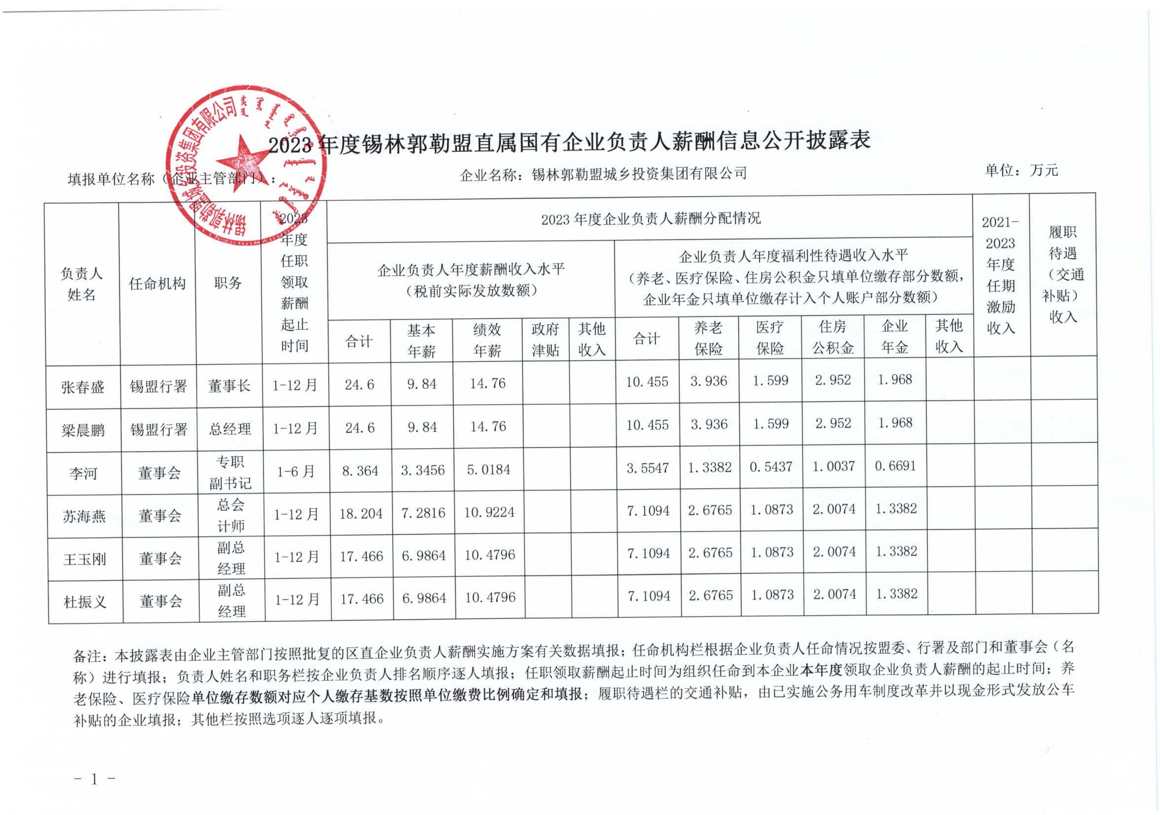 2023年度錫林郭勒盟直屬企業(yè)企業(yè)負(fù)責(zé)人薪酬信息公開披露表